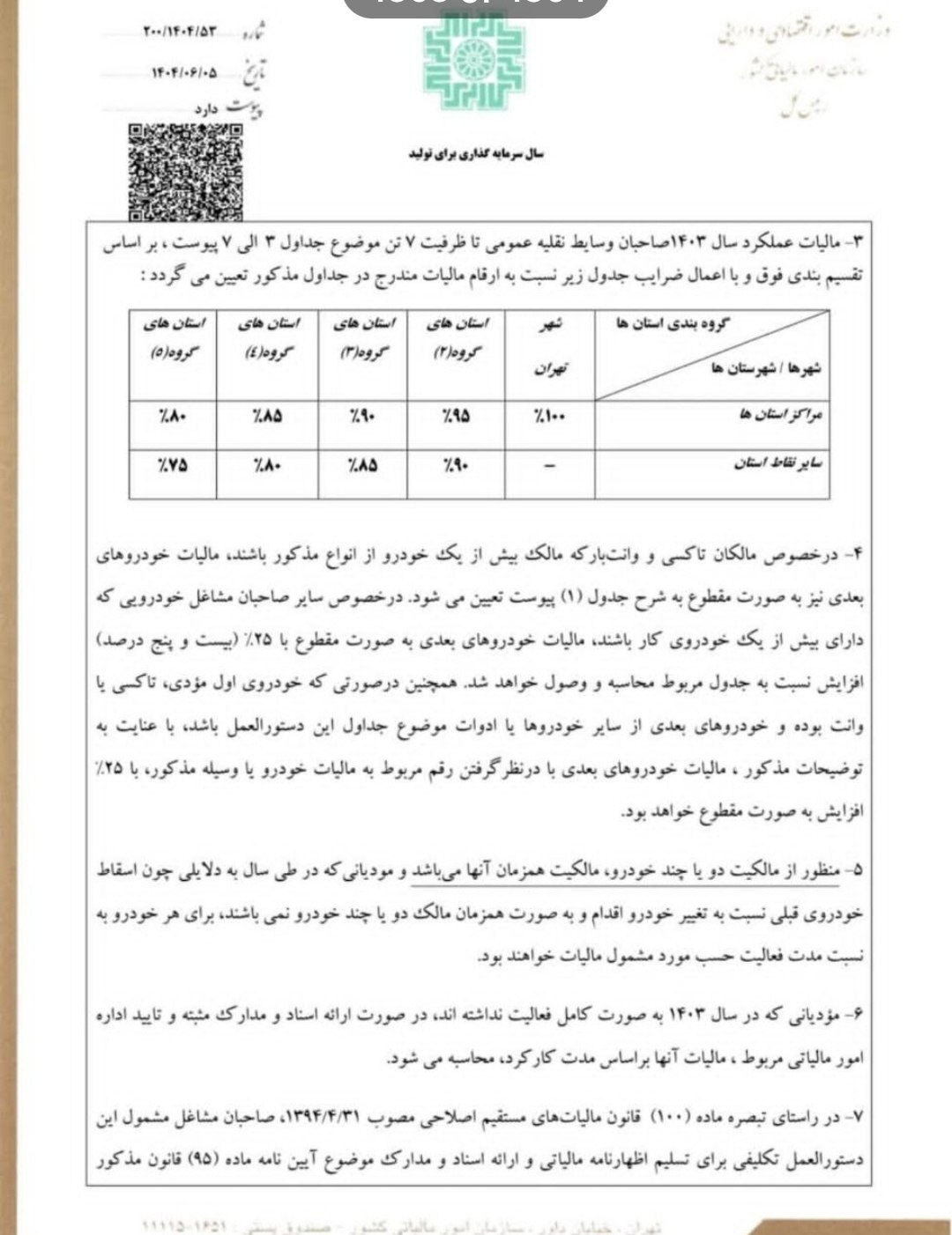 دستورالعمل تعیین مالیات مقطوع خودروهای پلاک عمومی در سال ۱۴۰۳ آيین نامه هاي قانون مالیاتها اخبار برگزیدهاخبار مجامع حرفه اي