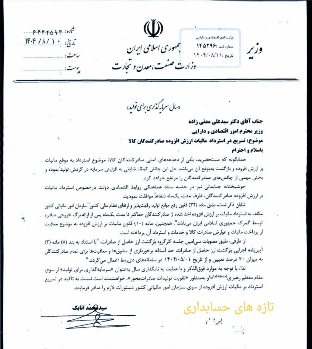 درخواست تسریع در استرداد مالیات بر ارزش افزوده