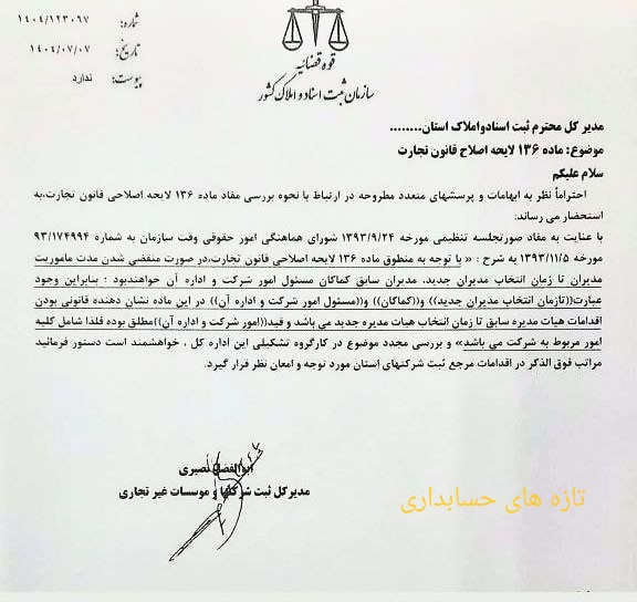 ماده ۱۳۶ لایحه اصلاح قانون تجارت: